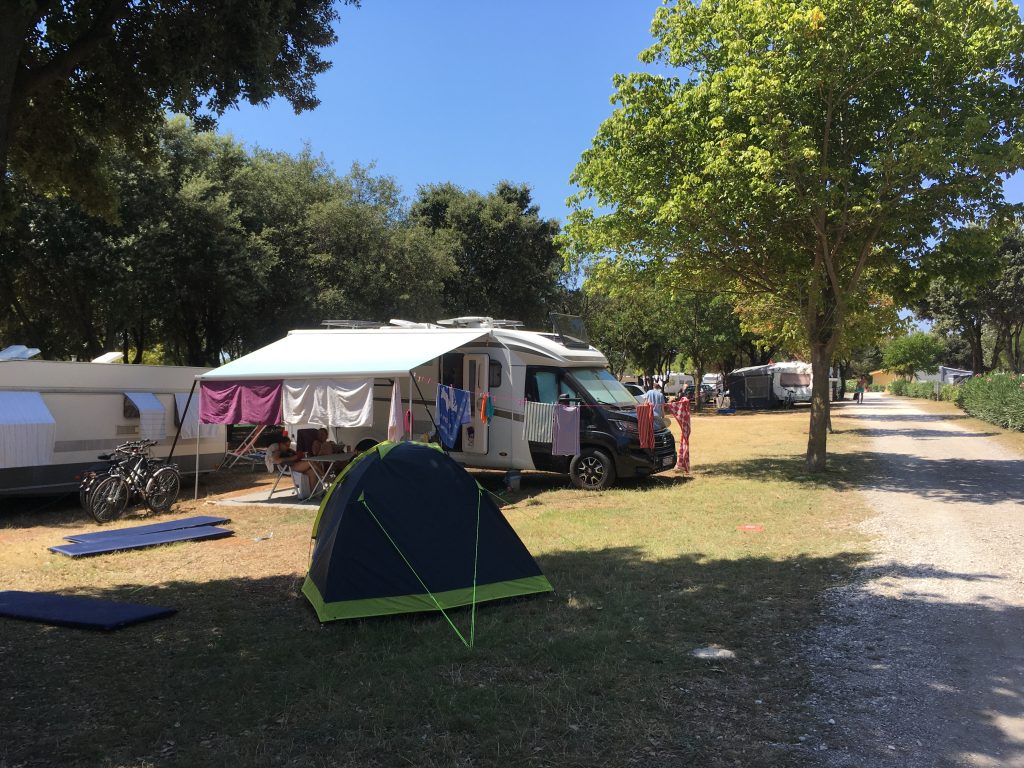 Um 8:55 Uhr ist alles gepackt und wir drehen eine Ehrenrunde auf dem Platz um das Grauwasser abzulassen. Dann geht es los nach Medulin, wo wir vorher schon ein paar mal mit dem Auto waren und etwas gemietet hatten.