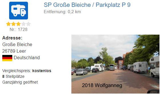 Um 9:30 Uhr sind wir von Lingen aus gestartet und stehen um 10:54 Uhr bei 16.387 Km auf der großen Bleiche. In Leer ist es ganz schön eng und man muss sich überlegen wo man lang fährt. Wir wollten erst zur Ems Marina, aber die liegt weit außerhalb von Leer. Das machte für uns keinen Sinn. Der Platz in Leer ist kostenlos. Lediglich Strom kostet. Versorgung und Entsorgung waren leider defekt als wir vor Ort waren.