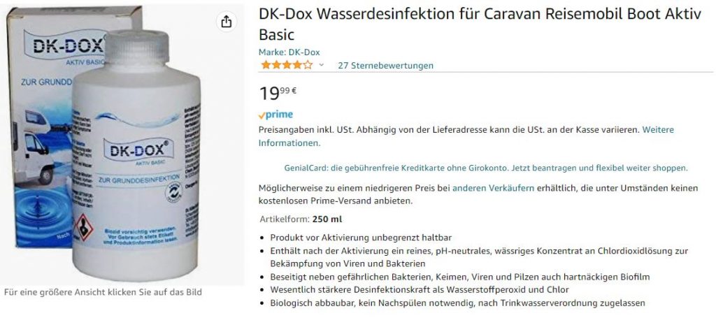 Als erstes haben wir uns den guten und bewährten Britta Frischwasserfilter gekauft. Er soll zur finalen Reinigung, für das Gewissen, vor dem Verzehr noch zum Einsatz kommen. Zusätzlich haben wir eine Tankreinigung, sowie eine Reinigung aller Wasserschläuche durchgeführt. Das wird nun einmal im Jahr gemacht und sollte vollkommen ausreichen.