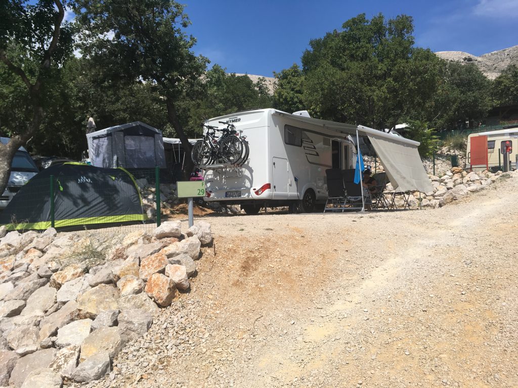 Wir fahren um 8:00 Uhr los Richtung Krk. Wir wollen hier unbedingt einen Platz finden. Auf dem Weg dahin besuchen wir Wilma und Andrea in Sibinji, ein Platz direkt an der Küstenstraße. Der Platz kostet fast nichts, hier ist aber auch nichts. Wir bevorzugen Plätze, auf den Nachts die Schranke unten und der Sicherheitsdienst im Einsatz ist. Nicht das wir das jemals in Kroatien nötig gehabt hätten, aber wir können so ruhiger schlafen. Die Brücke nach Krk kostet uns 51 Kuna in der Kathegorie 2. Wir müssen einige Plätze anfahren, die aber alle voll sind. Aber wir geben nicht auf und fahren weiter. Um 14:39 Uhr erreichen wir bei 14.554 Km den Platz.