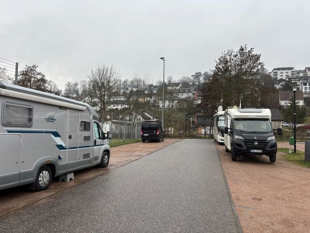 Das positivste zu dem Platz ist, das man die Altstadt mit der tollen Ruine zu Fuß erreichen kann. Man steht auf Schotter, auf einem umgewandelten Teil des Parkplatzes. Entsorgung von grau Wasser geht nur mit Schlauch. Neben dem Platz ist ein großer Fußballplatz und eine Sporthalle. Dementsprechend laut und wuselich ist es auf dem Parkplatz und dem Sportplatz. Der Preis mit 7, 19 € ist allerdings unschlagbar. Für eine Nacht also eine Option.