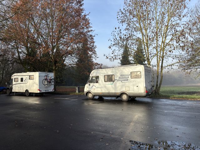 Um 9:30 Uhr sind wir von Bad Hersfeld über Land nach Borken gestartet. Die Wolken hangen so tief, dass wir teilweise nur 50 Meter Sichtweite hatten. Die Fahrt war also entsprechend spannend. Zwischenzeitlich habe ich Wilma mit Ihrem Wohnmobil im Rückspiegel gar nicht mehr sehen können. Um 10:30 Uhr standen wir dann bei 88.046 Km auf dem Platz.