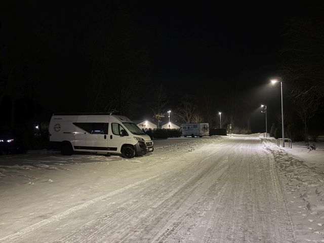 Als ich ankam, war alles zugeschneit und die Parzellen waren kaum zu erkennen. Trotzdem war klar, wie man sich stellen musste. Die Anmeldung erfolgt über die paxter App und kostet zehn Euro pro Nacht. Strom und Wasser sind extra. Die Parzellen sind groß genug, die Versorgung und Entsorgung ist top gepflegt und auch bei dem Schnee alles frei. Die Stadt ist fußläufig zu erreichen.