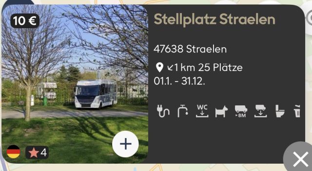 Um 8:15 Uhr stand ich dann bei 90.822 km in Straelen auf dem Platz. Der Platz ist schön angelegt, aber die Wasseraufnahme war, auf Grund der Position der Wasserstelle, etwas schwierig. Das ist irgendwie nicht für eine Person ausgelegt. Einer muss den Knopf drücken damit das Wasser läuft und eigentlich muss der andere den Schlauch festhalten. Ich brauche wieder jemanden der mich begleitet! Leider sind die Wege auf dem Platz stark mit Moos und Matsch bedeckt. Das machte das laufen etwas rutschig. Im Sommer ist das sicherlich kein Problem. Das WLAN aus dem anliegenden Schwimmbad ist vorhanden, aber es braucht einen Verstärker, da sonst nix ankommt.