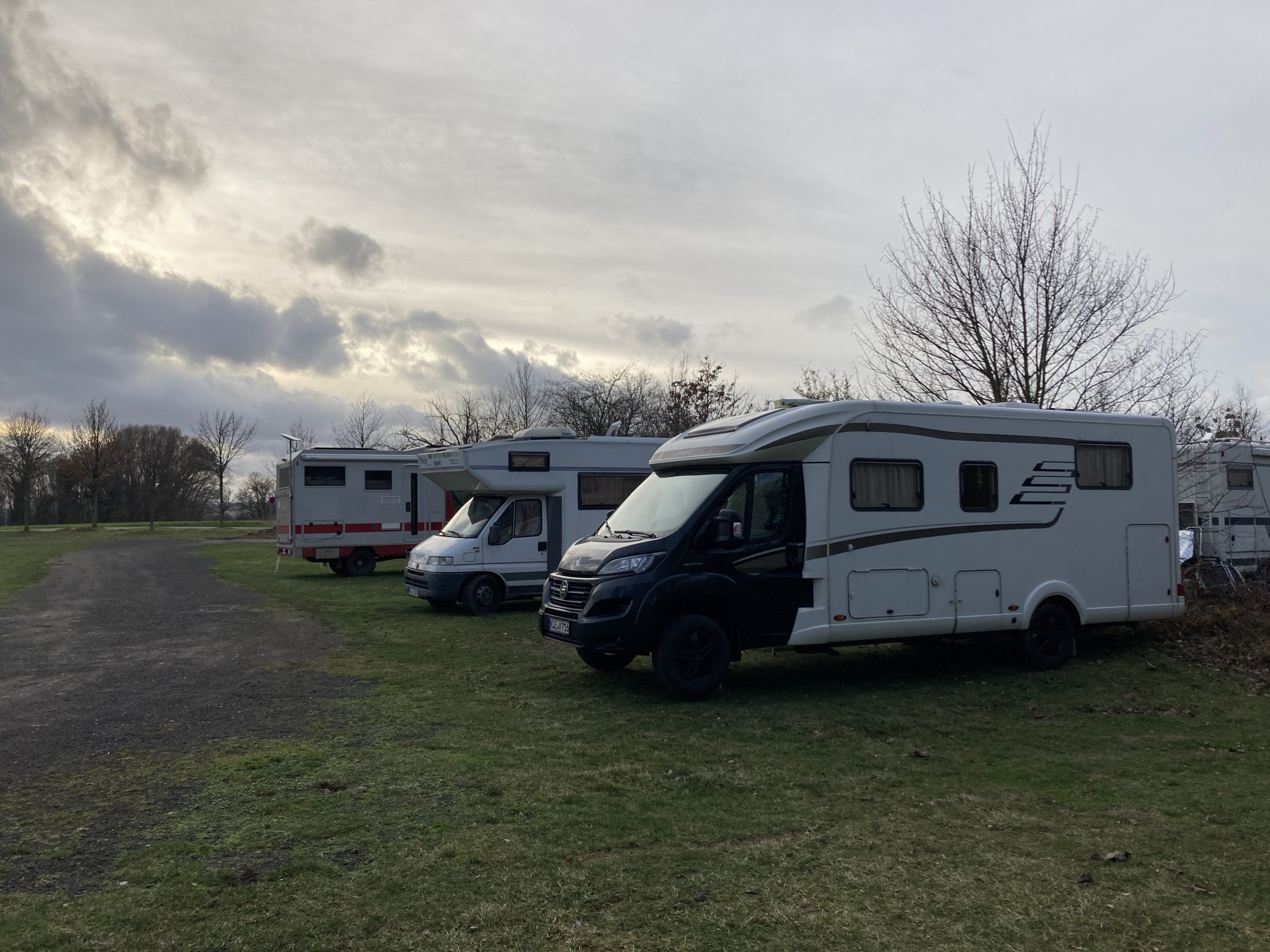Nachdem wir uns orientiert hatten, haben wir eine trockene Stelle entdeckt und uns aufgestellt. 12,50 € kostet der Platz am Automaten mit EC oder Bargeld. Dafür ist der Strom aber drin. Man darf maximal fünf Tage hier stehen. Wie das kontrolliert werden soll ist uns ein Rätsel. Denn hier stehen einige Wohnmobile die sicherlich schon länger hier sind. Was uns hier richtig gestört hat ist, dass der Müll nicht getrennt wird und nur ein großer Container da stand. Und er wurde scheinbar auch noch fremdgenutzt. Das sah irgendwie vermüllt aus. Nach starkem Regen kann man den Platz aber nicht wirklich empfehlen. Die Rasenfläche war so schon durchweicht und ist abschüssig zu dem geschotterten Teil. Da ist ein durchdrehen der Räder vorprogrammiert.